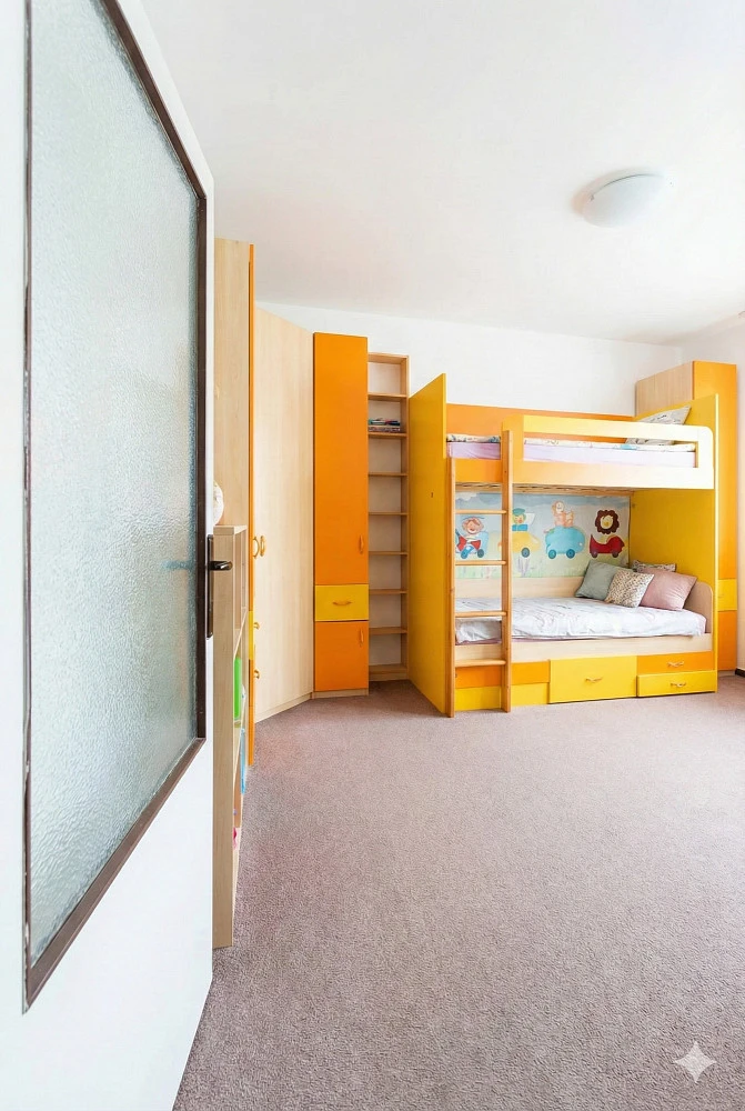 Dispozice 3+1 zahrnuje tři samostatné pokoje, které poskytují dostatečné soukromí a prostor pro celou rodinu. Kuchyně je vybavena oknem, které přináší do bytu příjemné světlo a výhled do okolí. Byt je v udržovaném stavu, což nabízí příležitost k vlastním úpravám a přizpůsobení interiéru podle individuálních potřeb.
