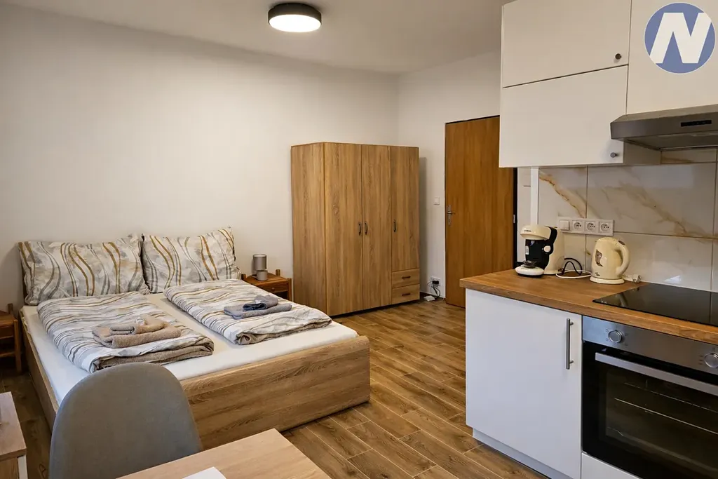 Nabízím pronájem kompletně zařízeného bytu o dispozici 1+kk v centru města Husinec. Byt se nachází v 2. patře zděného bytového domu, vchod do domu je z uzavřeného dvora domu. Byt prošel kompletní rekonstrukcí, nová koupelna, nová kuchyňská linka se spotřebiči (myčka, trouba, varná deska, digestoř, lednička). Byt je připraven k okamžitému nastěhování. Měsíční nájemné činí 11.000 Kč + zálohy na energie (cca 3.500 Kč). Při podpisu nájemní smlouvy bude vyžadována vratná kauce 22.000 Kč. Při rezervaci se platí jednorázový rezervační poplatek 11.000 Kč. V Husinci je veškerá občanská vybavenost. Dobrá dostupnost do Prachatic (7 km), Vimperka (17 km) a Volyně (16 km), České Budějovice (40 km).