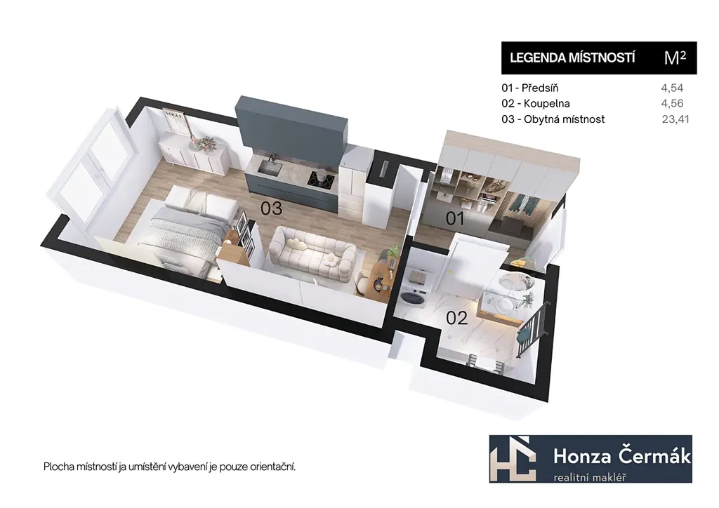 (+ zálohy na služby 3.000,- Kč měsíčně. Provize RK 20.570,- Kč včetně DPH.)