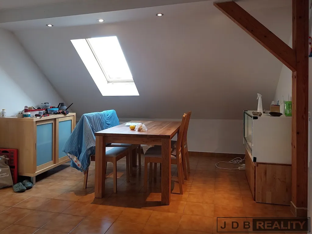 Nabízíme k pronájmu podkrovní byt o celkové velikosti 103 m² a dispozici 4+kk v rodinném domě v centru Roztok u Prahy. Dům se sedlovou střechou z roku 2000 se nachází na pozemku o celkové výměře 622 m². Do bytové jednotky je přístup po vnějším schodišti, což zaručuje absolutní soukromí. Bytová jednotka disponuje kuchyní s jídelním koutem a kuchyňskou linkou s elektrickým sporákem, troubou a myčkou, velkým obývacím pokojem, koupelnou s vanou a wc, dalším samostatným wc, dalšími dvěma pokoji a šatnou (komorou). Vzhledem k dostatečnému množství střešních oken je celý byt velice dobře prosvětlen.