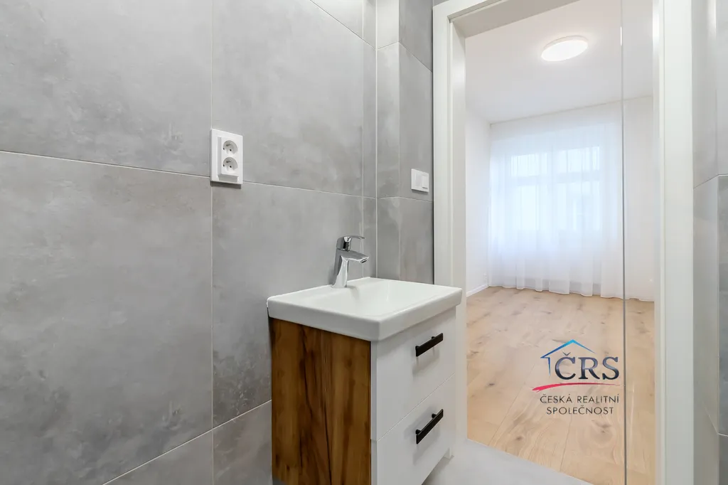 Byt je po kompletní rekonstrukci ( nová elektroinstalace, rozvody vody, kanalizace, nové vytápění vč. radiátorů a kotle, změna dispozice ). Dispozice bytu vstupní chodba, samostatné wc, komora ( el. kotel ), obývací pokoj s kuchyňskou linkou vč. spotřebičů ( indukční varná deska, el. trouba, digestoř, lednice s mrazákem, myčka ), ložnice, koupelna se sprchovým koutem. Na podlaze vinyl a dlažba. Ohřev vody řešen vlastním el. bojlerem a vytápění el. kotlem. Plastová okna s výhledem do klidného dvoru orientované na východ. K bytu náleží zděná sklepní kóje. Dům má novou fasádu se zateplením, plastová okna, stoupačky, nový výtah, všechny byty mají stejné vstupní dveře do bytů. Nízké měsíční poplatky. Kompletní občanská vybavenost v místě, výborná dostupnost do centra, lze financovat hypotéčním úvěrem. Vřele doporučuji prohlídku! Více informací u makléře nemovitosti.