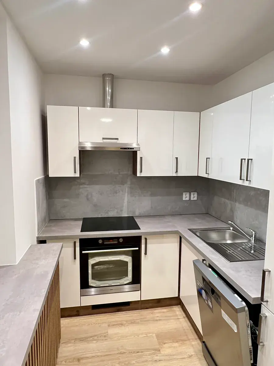 Byt zaujme zejména svým pečlivým zpracováním detailu, celkově povedenou moderní rekonstrukcí, novými parketami, štuky, podhledy, dále třeba i led podsvícením všech místností a novým sociálním zázemím s pračkou a sušičkou. Nechybí třeba i bezpečnostní dveře a výhled do přilehlého klidného parku. Najdete zde tak prostě ideální spojení komfortu a pohodlí. Součástí pronájmu je i suchý bezpečný sklep, který poskytuje dodatečný úložný prostor a kolárna.