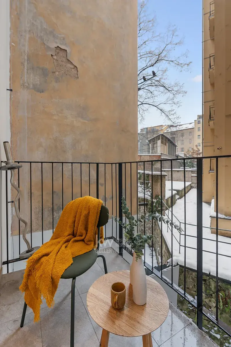 Byt se nachází ve 2. nadzemním podlaží kompletně zrekonstruovaného činžovního domu v jedné z nejžádanějších částí Žižkova, jen pár minut chůze od náměstí Jiřího z Poděbrad.