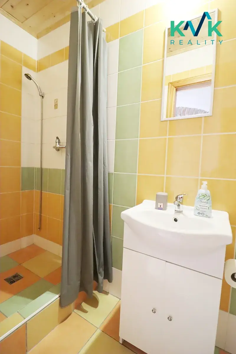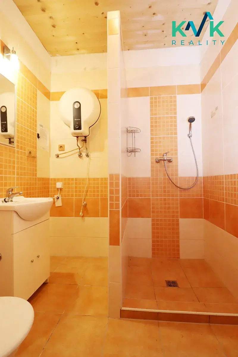 Dispozice: hlavní obytná místnost/ložnice s dvoulůžkem, koupelna se sprchou, WC, místo pro pračku.