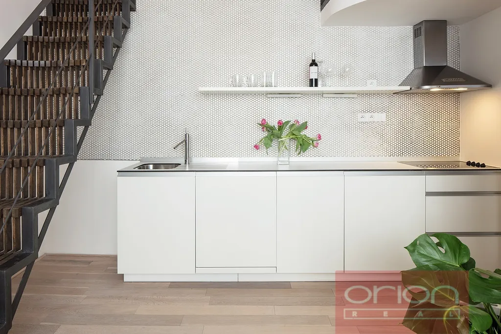 Nabízíme k pronájmu mezonetový byt 1+1 s terasou v 5. patře zrekonstruovaného secesního domu z 19. století v Praze 5. V domě je výtah. Zařízený byt o rozloze 38 m2 nabízí v horním patře ložnici s king size bed s nebesy a obývacím prostorem se sofa a vstupem na terasu. V dolním patře je kuchyňskáa jídelní část s vybavenou kuchyňskou linkou, stolem a židlemi, koupelna a WC, v předsíni je šatní skříň. K vybavení apartmánu patří TV, SAT, WIFI a klimatizace.