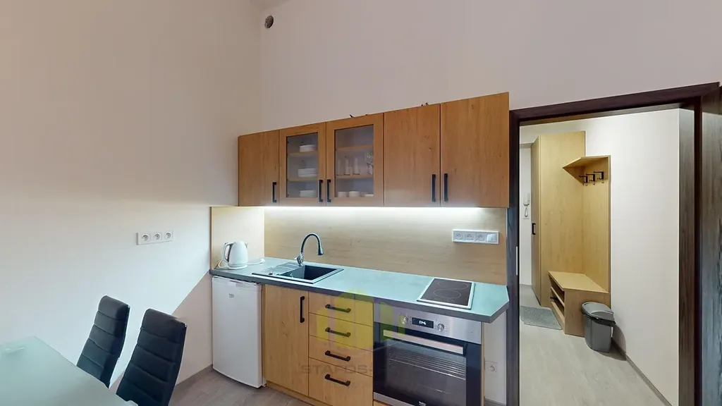 Nabízíme pronájem moderního bytu 1+kk 30,3m2 + balkon 2,7m2 ve 2.NP novostavby přímo v centru města, na ulici Wolkerova, Olomouc. Jedná se o druhou etapu nového rezidenčního bytového komplexu Zlaté Terasy. Daný bytový dům ve tvaru U je rozdělen na čtyři vchody se společnými prostory a třemi patry s vnitřními parkovacími stáními, mezi ulicemi Wolkerova, Eduarda Hamburgera a Eduarda Husserla. Poloha domu je tak krom stupně vybavení jednotlivých bytů, velkým lákadlem. V těsné blízkosti park Smetanovy Sady, botanická zahrada, tržnice a navazující dolní a horní náměstí. Žijte v centru dění, s plnou občanskou vybaveností a perfektní dopravní dostupností MHD, minimální pěší vzdáleností parků a centra města, nájezd na dálnici jen cca 2minuty jízdy. Byt, orientovaný na Východ se skládá z obývacího pokoje s kuchyňským koutem na míru se vstupem na balkon, zádveří s prostornými vestavěnými skříněmi s pračkou a koupelny s wc. Byt se nabízí kompletně vybavený, včetně kuchyňských potřeb. Součástí nájmu je také prostorná komora na patře o ploše 4m2 a vnitřní parkovací stání. Byt spadá svou energetickou náročností do třídy B - velmi úsporná! Mimo jiné je součástí vybavení kvalitní vinylová podlaha, okenní výplně z trojskla. Nájem činí 13.000,- Kč + náklady na bydlení cca do 1.600,- Kč + elektřina cca 700,- Kč. Kauce ve výši dvou nájmů, lze rozložit do dvou splátek. Odměna RK ve výši jednoho nájmu + 21% DPH. Samozřejmostí je bezbariérový přístup do domu, moderní výtah a vysokorychlostní internet optikou. Zahájení nájmu možné ihned. U zájemců prověřujeme evidenci exekucí, insolvence, a dluhy na zdravotním pojištění. Prohlídky s vážnými zájemci po domluvě s makléřem.