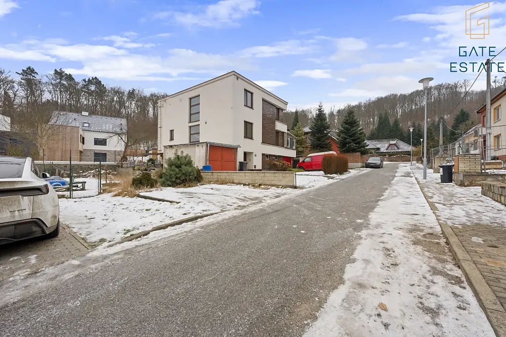 Dům se nachází téměř na konci slepé ulice, kde je minimální provoz. V bezprostřední blízkosti je les, který se přirozeně stává součástí každodenního života - ať už jde o procházky, pobyt venku nebo krátký únik do přírody.