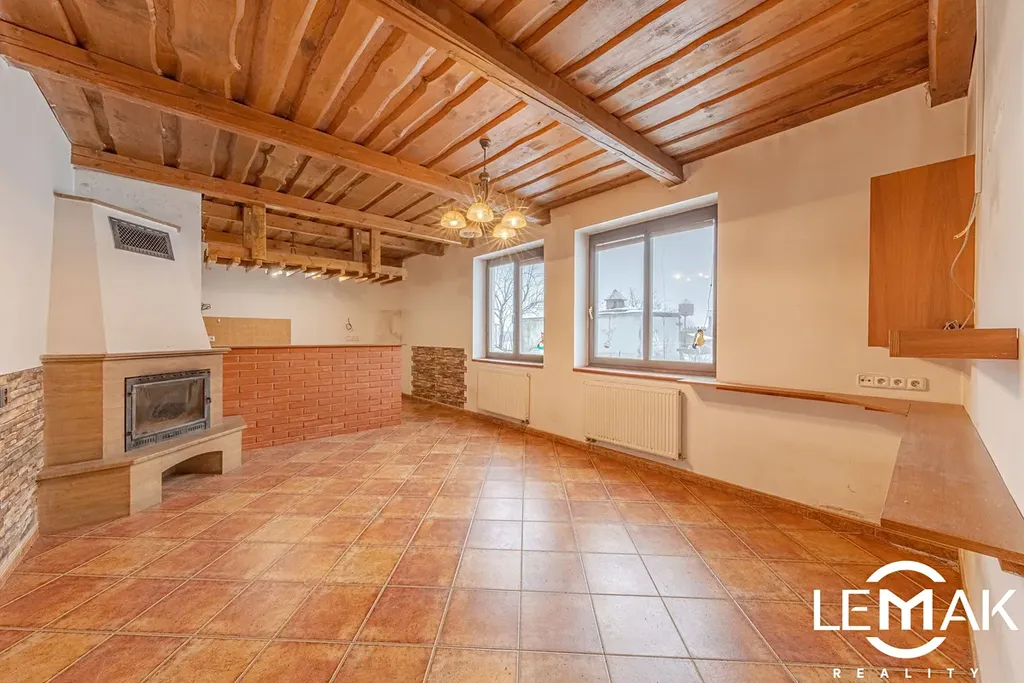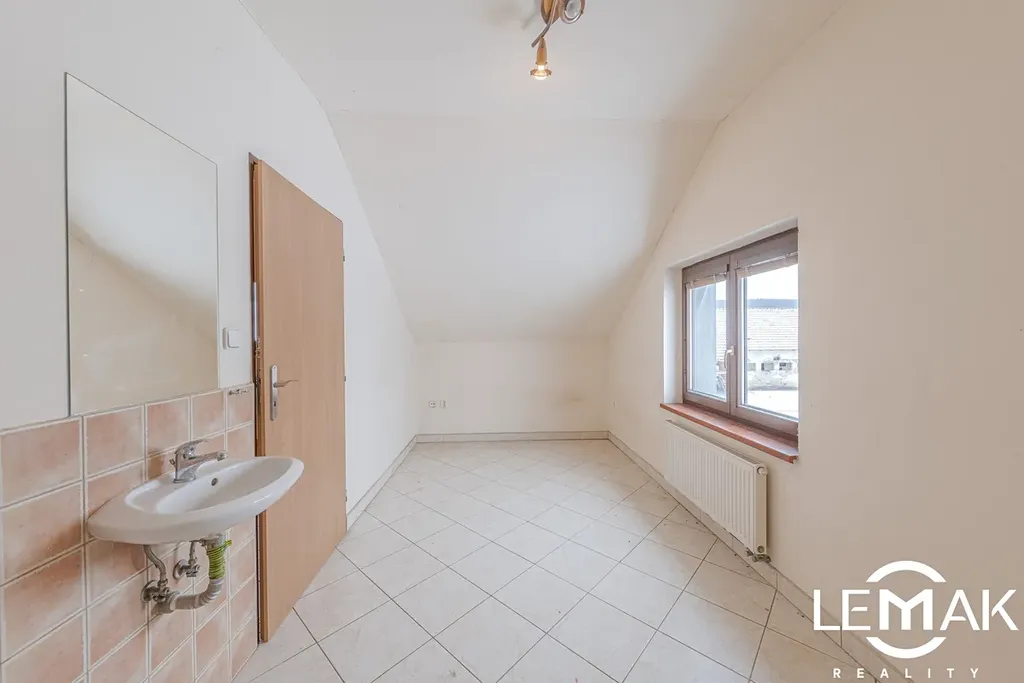 Součástí přízemí je také prostorná místnost o velikosti 14 m² s výhledem do dvora, která přímo navazuje na stájové prostory a umožňuje pohodlný průchod z domu do stájí.