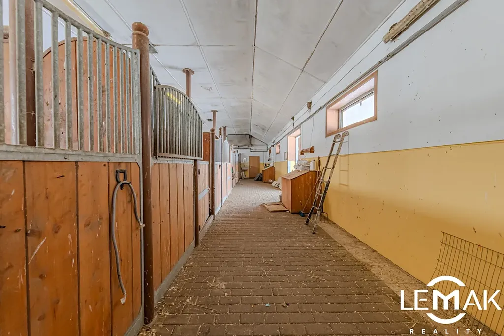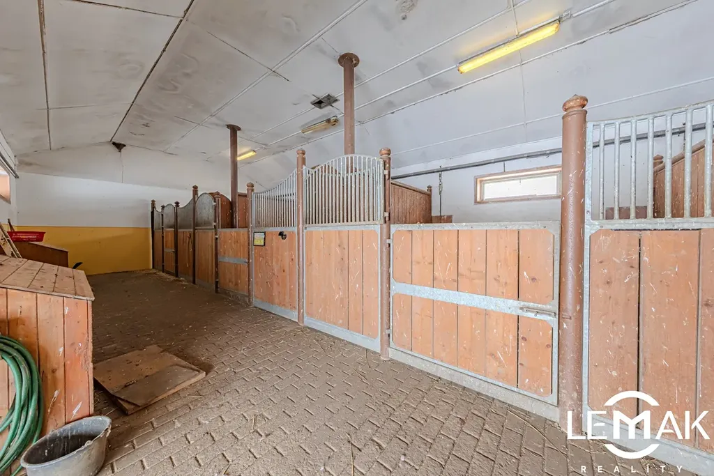 Do prvních stájových prostor je možný přímý vstup z domu nebo z kryté verandy dvoukřídlými dveřmi. Tyto prostory zahrnují 5 samostatných boxů, každý o velikosti 17 m².