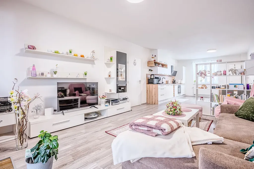 Součástí bytu je také prostorná lodžie o velikosti 8,80 m², která poskytuje příjemný prostor pro relaxaci na čerstvém vzduchu. Pro uskladnění věcí oceníte sklepní kóji s plochou 2,78 m². V obývacím pokoji je instalováno podlahové topení. Tento byt je navržen v moderním stylu, kvalitní zpracování interiéru zajišťuje pohodlné bydlení v klidné lokalitě. K bytové jednotce náleží jedno zakoupené venkovní parkovací stání.