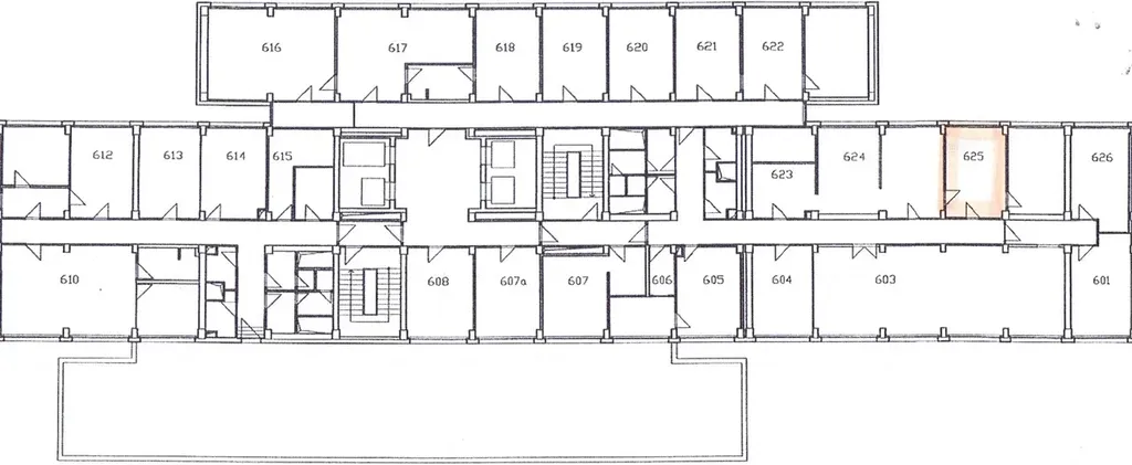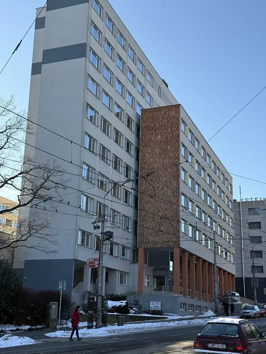 Kancelář v 5.NP se nachází v budově, kde sídlí finanční úřad.
