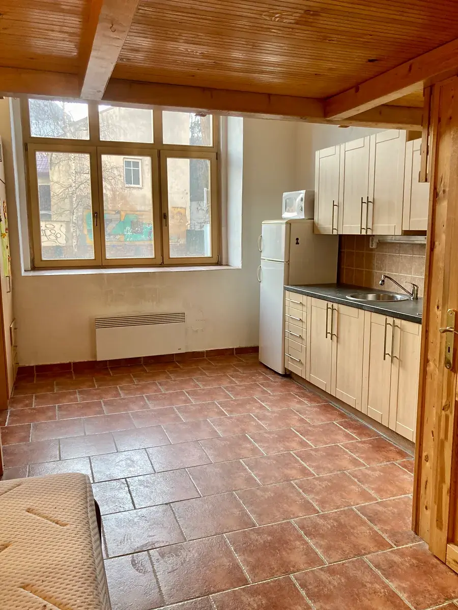 Nabízím k pronájmu byt o dispozici 1kk o celkové ploše 26m2 plus spací patro v cihlovém činžovním domě na adrese Vrchlického 47/36, Praha 5 - Košíře.