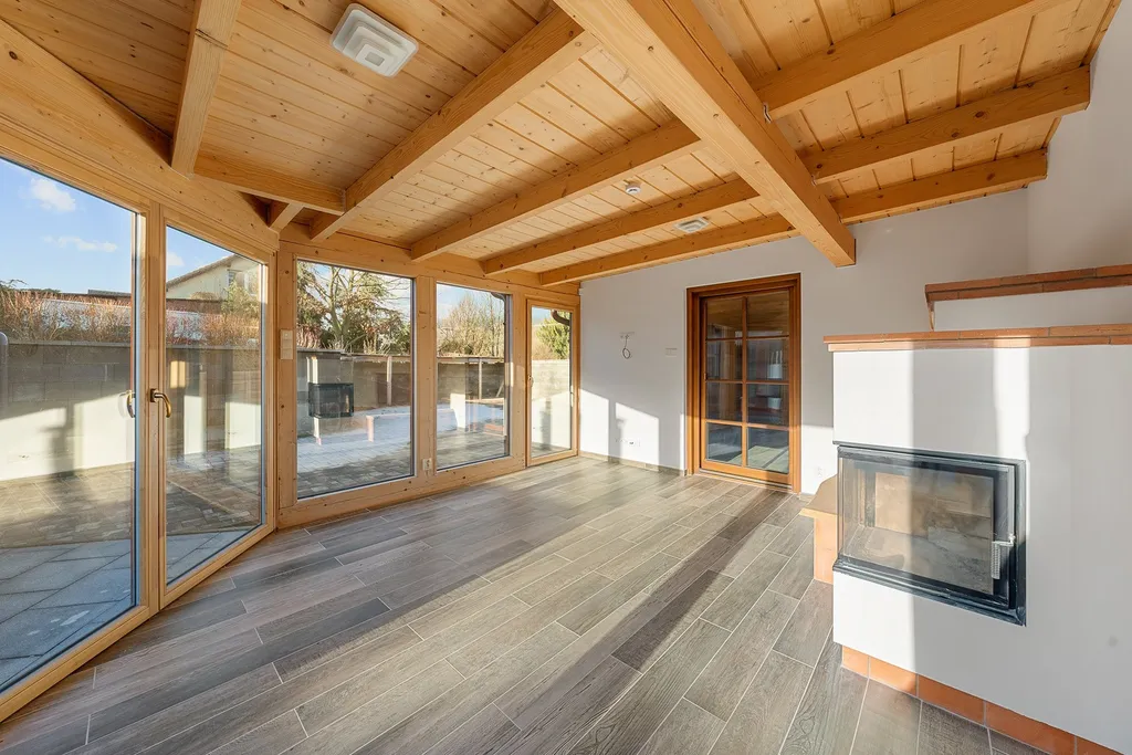 Objevte domov, kde teplo sálá z každého koutu. Tento dům byl postaven s důrazem na útulnost a moderní technologie. Srdcem interiéru je prosklený obývací prostor s krbovými kamny s výměníkem, která v kombinaci s podlahovým vytápěním vytvářejí dokonalou tepelnou pohodu. Pro maximální pohodlí a čistotu v obytné místnosti je přikládání do krbu řešeno zadními dvířky.