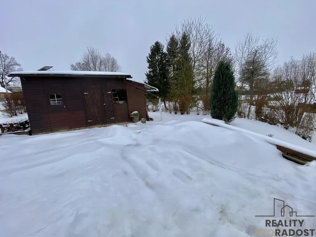 Na pozemku o celkové výměře 663 m2 leží dřevěná chata, zastavěná plocha je 24 m2. Chata má číslo evidenční. Chata nyní slouží jako sklad nářadí.