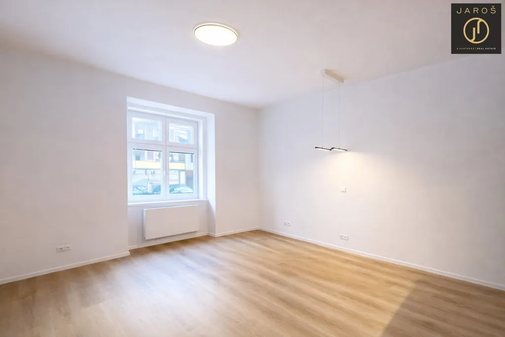 Nabízím k pronájmu bytovou jednotku 2+kk o velikosti 49,4 m2 po celkové rekonstrukci v 1. patře (zvýšené přízemí domu) cihlového domu v ulici Pod Pramenem, Praha - Nusle, jen 10 minut od stanice metra C: Pražského Povstání.