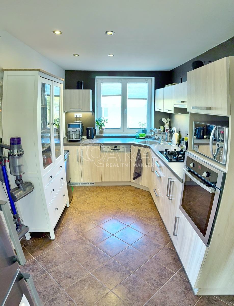 Kuchyň: Kuchyňská linka s velkorysou pracovní plochou je vybavena myčkou, elektrickou troubou, plynovou varnou deskou a digestoří.