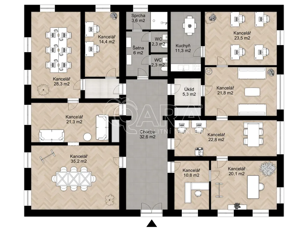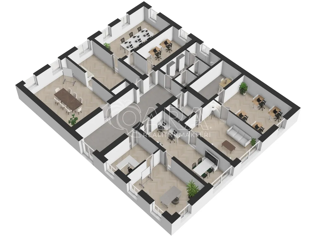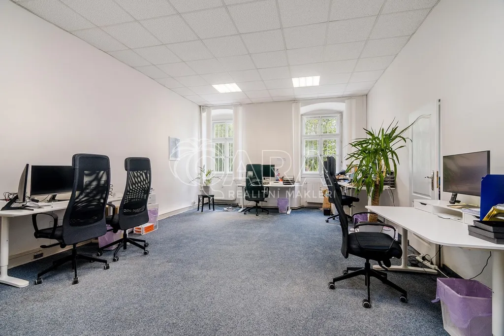 Kancelář vznikla v novobarokní budově, jejiíž historie sahá do 13. století, respektive 17. století, kdy byla přestavena z tvrze na zámek. Prostory disponují 10-ti samostatnými kancelářemi, které lze však vzájemně procházet, tudíž můžete firemní tým efektivně rozmístit, tak aby jednotlivá oddělení mohla mezi sebou efektivně komunikovat a spolupracovat, viz přiložený půdorys v inzerci. Dále je k dispozici malá místnost přístupná z haly, sloužící jako serverovna. Kuchyňka je mezi kancelářemi. Přístupná je velká terasa, kterou mohou nájemníci využívat k odpočinku, ale třeba i ke kancelářské práci na čerstvém vzduchu. V rámci nájmu můžete v areálu zámku parkovat až 6 automobilů.
