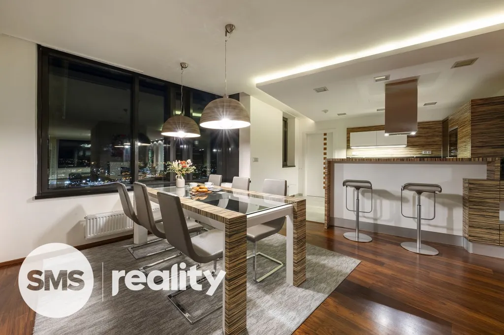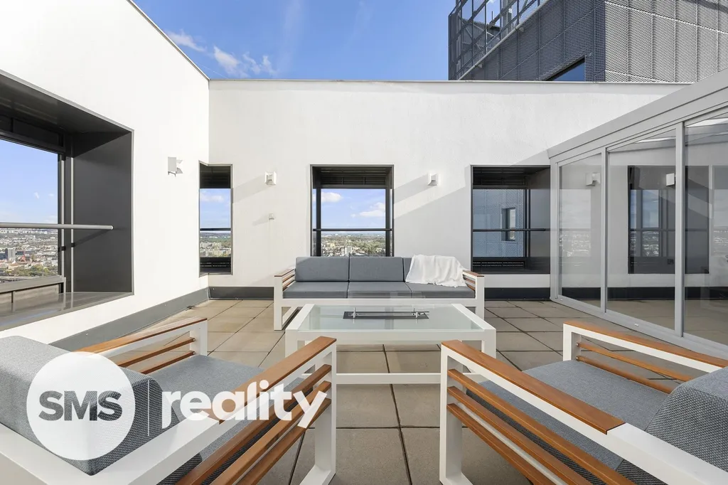 Pomocí výtahu se za pár vteřin dostanete do 28. patra, které je přístupné pouze pro rezidenty tohoto apartmánu z roku 2013. Apartmán je rozdělen na dvě podlaží, s vynikajícím využitím prostoru a nadstandardním vybavením v ceně.