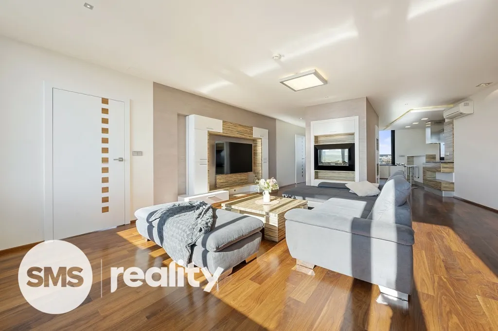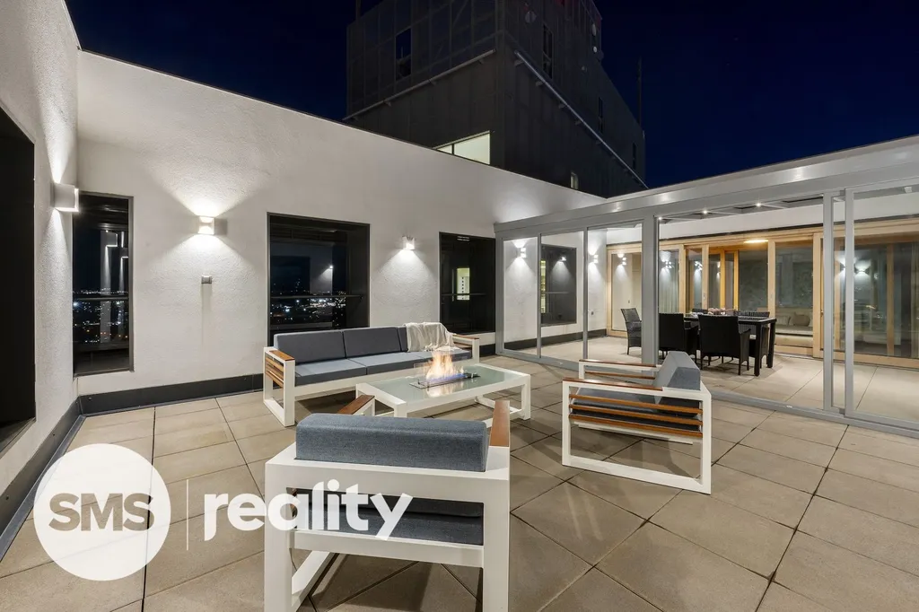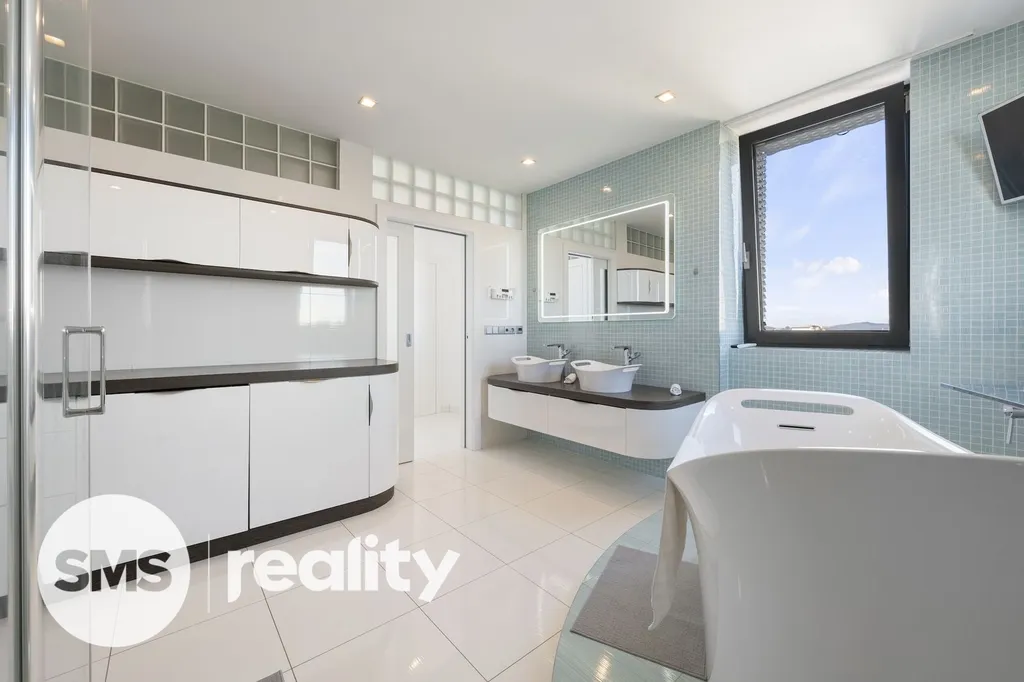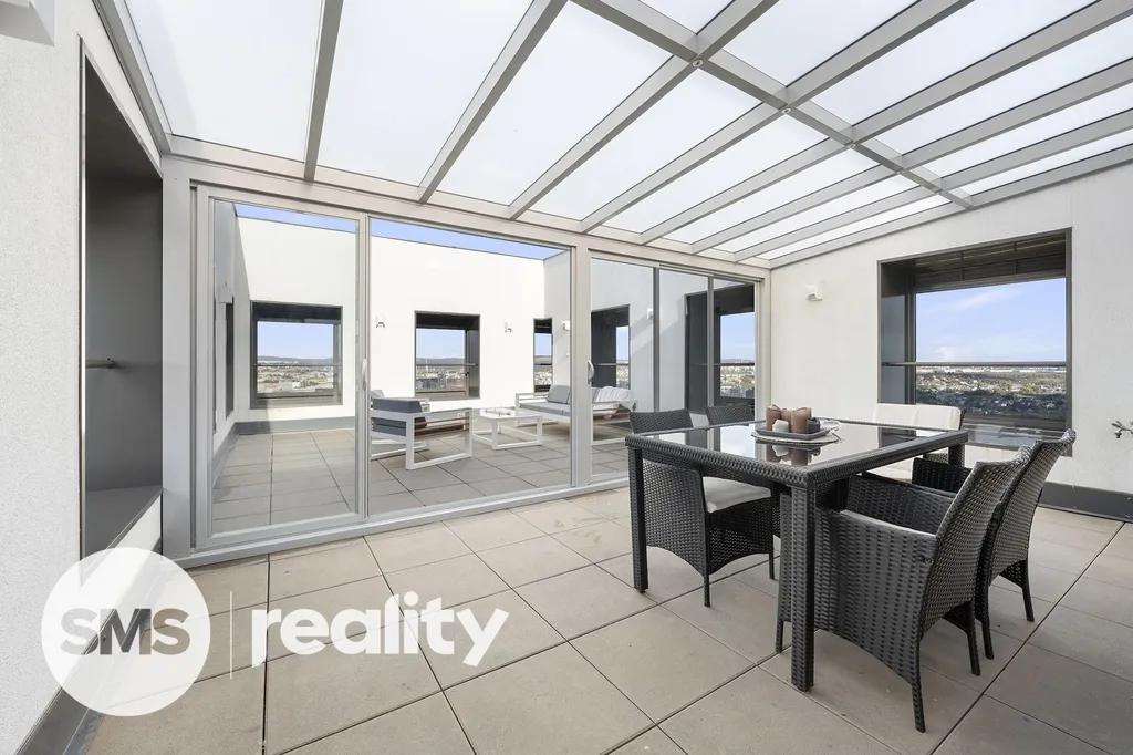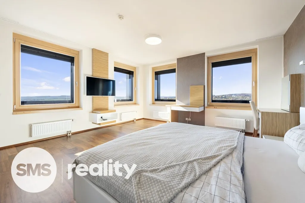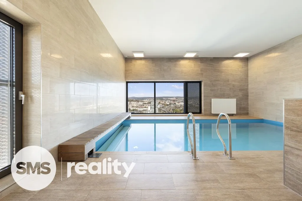 Tento exkluzivní 2-podlažní apartmán s wellness zónou nabízí prestižní bydlení. Kromě dechberoucího výhledu na celé Brno se mohou noví nájemníci těšit na vyhřívaný bazén o rozměrech 8 x 4 metrů, saunu a částečně zastřešenou terasu o ploše 51 metrů čtverečních.