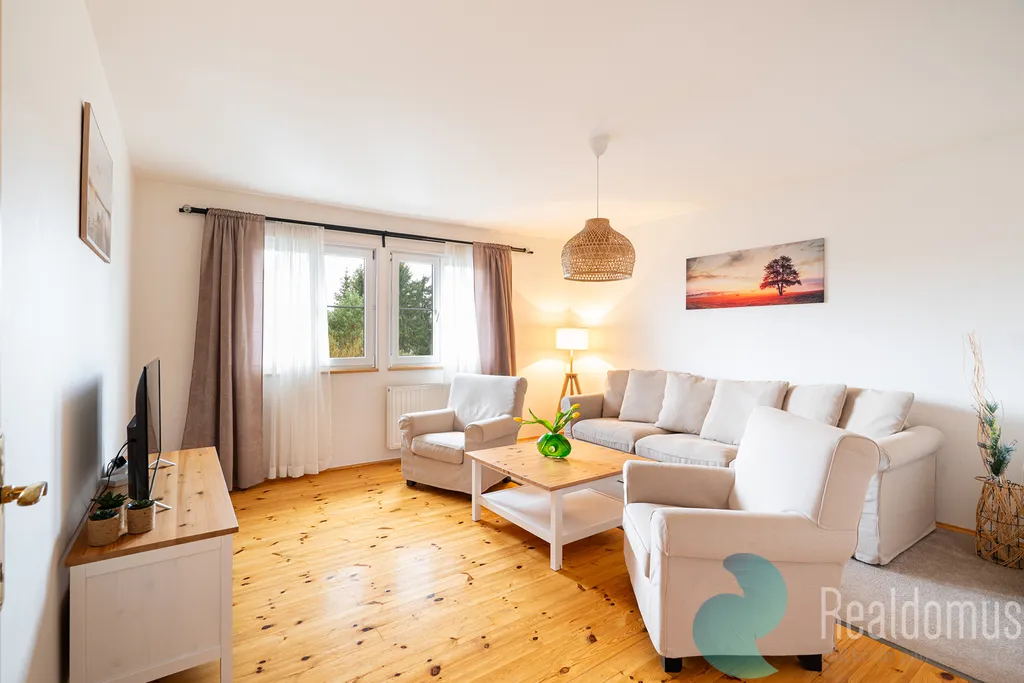 Poslední volný apartmán o dispozici 3+1 a podlahové ploše 61 m² se nachází ve 2. patře menšího 2-patrového domu, který tvoří celkem tři samostatné jednotky – každá na jednom podlaží. Interiér nabízí dvě ložnice, prostorný obývací pokoj a kuchyň s jídelním koutem vybavenou vestavnými spotřebiči. V krásné prostorné koupelně je vana, toaleta a velké umyvadlo. Celý dům i samotný byt prošel mezi lety 2000 a 2022 kompletní rekonstrukcí (včetně výměny rozvodů) kuchyně i koupelny, zateplení, nové střechy.