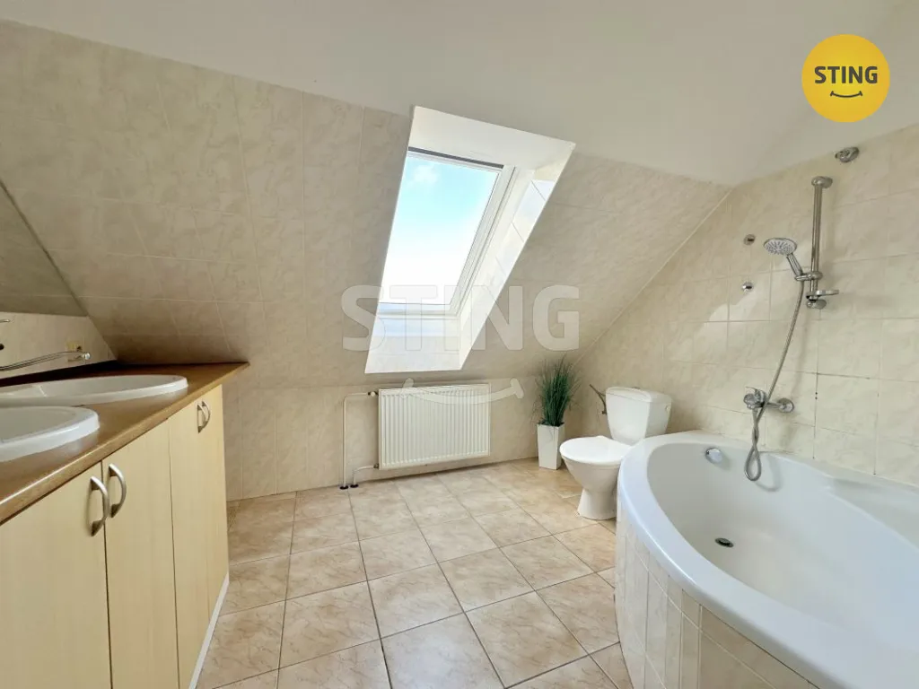 Byt je nádherně prosvětlený a nabízí dechberoucí výhled na celou Třebíč i její okolí, který se nikdy neomrzí – ať už při ranní kávě, nebo večerním posezení. Dominantou bytu je prostorný obývací pokoj s kuchyňským koutem, který přirozeně vybízí k setkávání i odpočinku. Součástí kuchyně je i praktická a prostorná spížka, která potěší každého, kdo má rád pořádek a dostatek úložného prostoru. V koupelně se nachází rohová vana, ideální pro chvíle klidu po náročném dni. Byt dále disponuje velkorysou chodbou, jejíž část lze bez problémů využít jako pracovní kout nebo domácí kancelář.