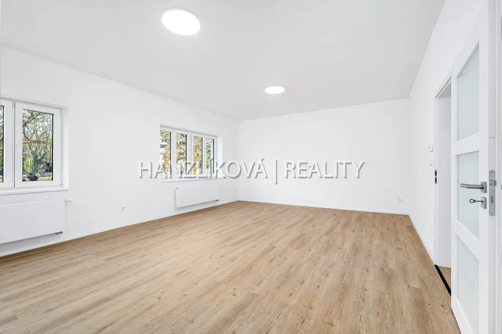 Druhá jednotka 1+kk má užitnou plochu 17 m², vlastní vstup, obytný prostor s kuchyňským koutem a samostatnou koupelnu se sprchovým koutem a toaletou. Ideální jako investiční byt k pronájmu, kancelář, ateliér nebo ubytování pro hosty.