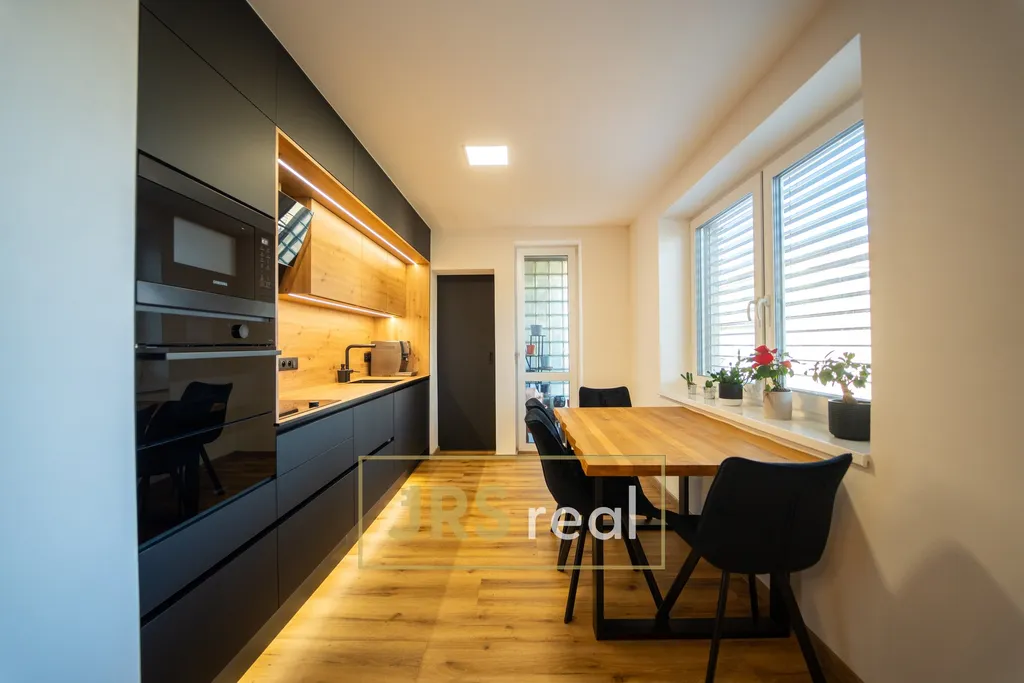 Ve výhradním zastoupení majitele nabízíme k prodeji moderní, plně vybavený a kompletně zrekonstruovaný byt o dispozici 3+kk a celkové ploše 84 m², který se nachází ve 2. patře bytového domu bez výtahu v Hustopečích. Byt prošel velmi rozsáhlou rekonstrukcí a původní zůstalo pouze obvodové zdivo, které bylo částečně přestavěno z Ytongu do dispozice 3+kk. Po vstupu do bytu Vás přivítá prostorná chodba s vestavěným předsíňovým setem, ze které je zajištěn vstup do všech místností. Naproti vstupním dveřím se nachází samostatná toaleta a vedle ní koupelna vybavená vanou, umyvadlem a otopným žebříkem. Vedle koupelny je praktická technická místnost s pračkou, sušičkou a plynovým kotlem, který zajišťuje podlahové topení a ohřev vody. Ložnice je zařízena dvoulůžkovou postelí, nočními stolky, televizí a vestavěnou šatní skříní. Vedle ložnice se nachází prostorný dětský pokoj. Dominantou bytu je hlavní obytná část – obývací pokoj propojený s kuchyní. Kuchyňská linka je vybavena kvalitními spotřebiči – vestavěnou troubou, mikrovlnnou troubou, digestoří, sklokeramickou varnou deskou a myčkou. Lednice je prakticky umístěna ve spižírně, která má vchod přímo vedle kuchyňské linky. V kuchyni je dále jídelní stůl se židlemi a vstup na balkon. Byt prošel před rokem kompletní rekonstrukcí, při které byla původní dispozice 3+1 změněna na moderní 3+kk. Byly položeny nové plovoucí podlahy, osazena nová plastová okna s předokenními elektrickými žaluziemi a v celém bytě byly instalovány klimatizační jednotky. Byt lze technicky upravit zpět do dispozice 3+1. K bytu náleží garáž s dálkově ovládanými vraty Lomax (ovládání možné i přes telefon), zahrádka, dva sklepy a také půdní prostor vhodný ke skladování. Na zahrádce se nachází hliníková pergola s posezením a vířivkou, které poskytuje ideální místo pro relaxaci. Měsíční náklady na energie činí cca 5 000 Kč a příspěvek do fondu oprav je 900 Kč/měsíc. Město Hustopeče nabízí kompletní občanskou vybavenost, výbornou dostupnost do Brna i Břeclavi a je vyhledávanou lokalitou díky vinařské tradici, okolní přírodě a bohatým možnostem sportovního i kulturního vyžití. V případě zájmu o tuto nemovitost kontaktujte makléře.