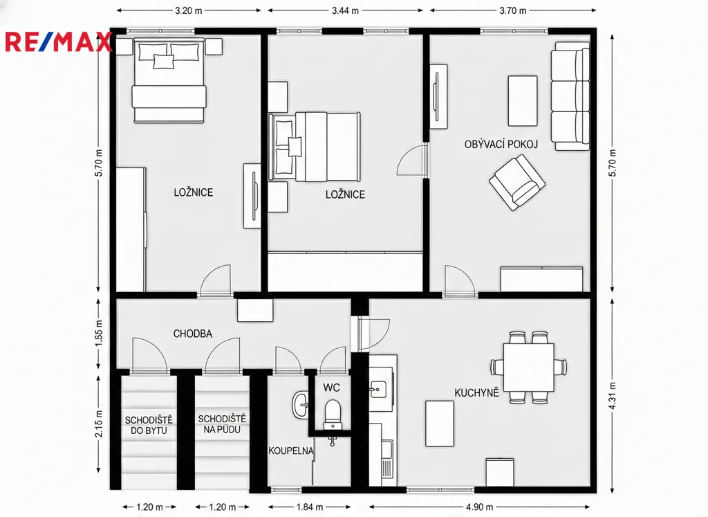 Ve 2. NP se nachází byt 3+1 o podlahové ploše cca 89 m², který prošel kompletní rekonstrukcí a je připraven k okamžitému užívání. Dispozice nabízí tři pokoje, oddělenou kuchyni, koupelnu se sprchovým koutem a samostatné WC. Interiér je řešen moderně, s důrazem na funkčnost, světlo a komfort každodenního bydlení. Vybavení bytu je věcí dohody.