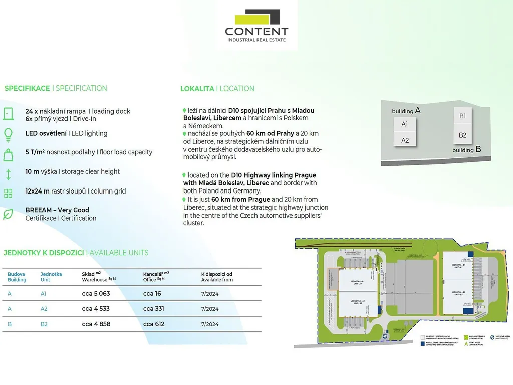 - v areálu k dispozici samostatné jednotky od cca 3000 m² - 10000 m