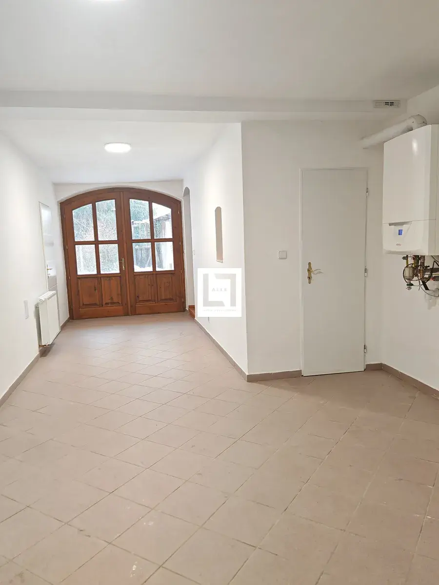 Vstupními dveřmi vcházíte do velmi prostorné chodby, která je zároveň průchozí na zahradu s terasou. V chodbě je umístěn plynový kotel a je zde připraven přívod pro pračku.