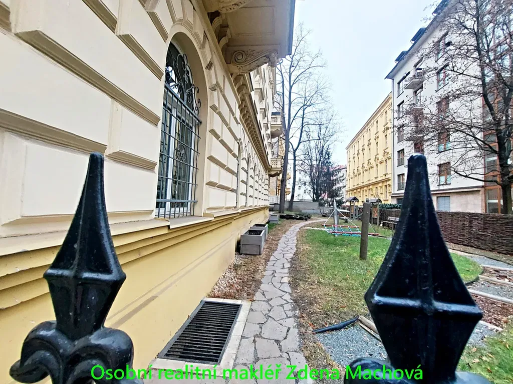 Byt se nachází v 1. nadzemním podlaží stylového vinohradského domu, který prošel rekonstrukcí a je situován v oplocené zahradě. Výhled z bytu směřuje právě do této zelené, uzavřené zahrady, což zajišťuje klid a soukromí.