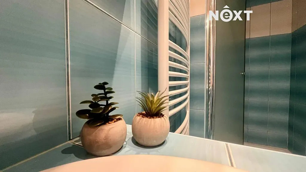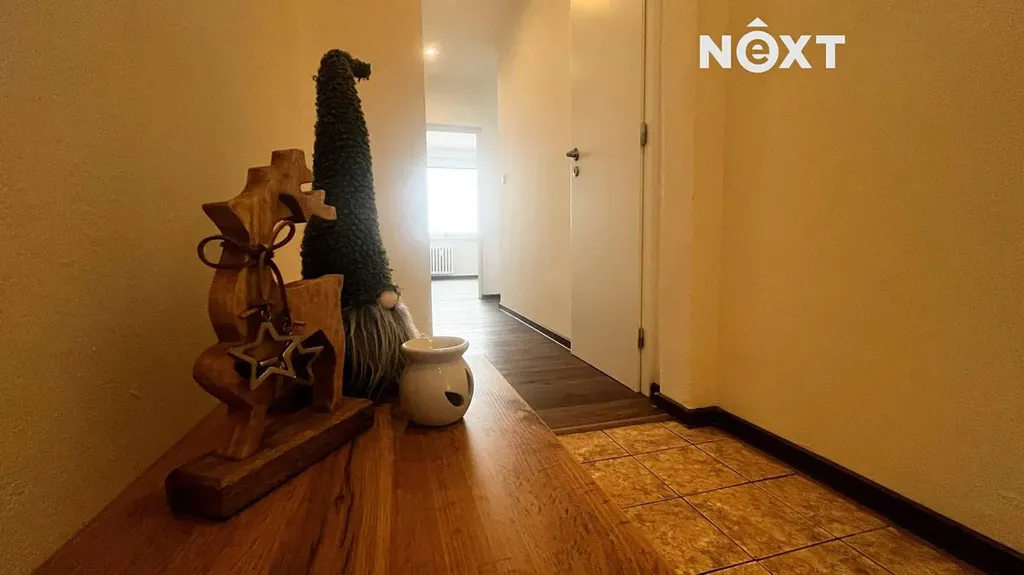 V bytě jsou nové podlahy, dveře, kuchyň i koupelna – vše je ve velmi dobrém stavu, připraveno k okamžitému nastěhování. Interiér působí čistě, elegantně a moderně, díky kombinaci bílých prvků, dřevěných dekorů a kontrastních podlah.