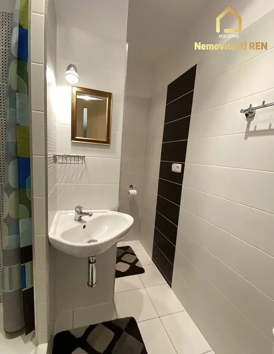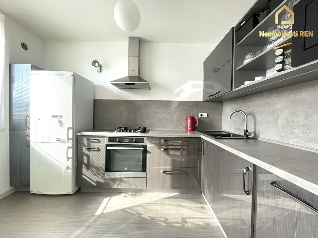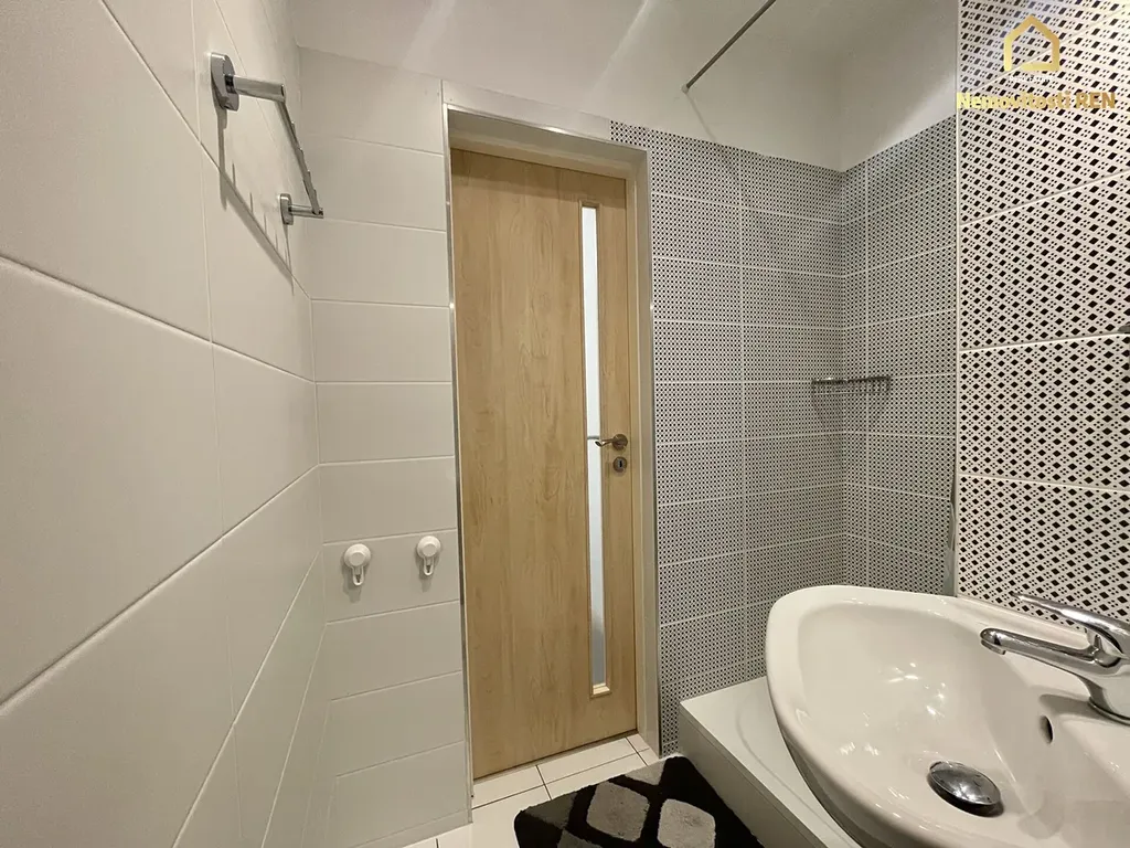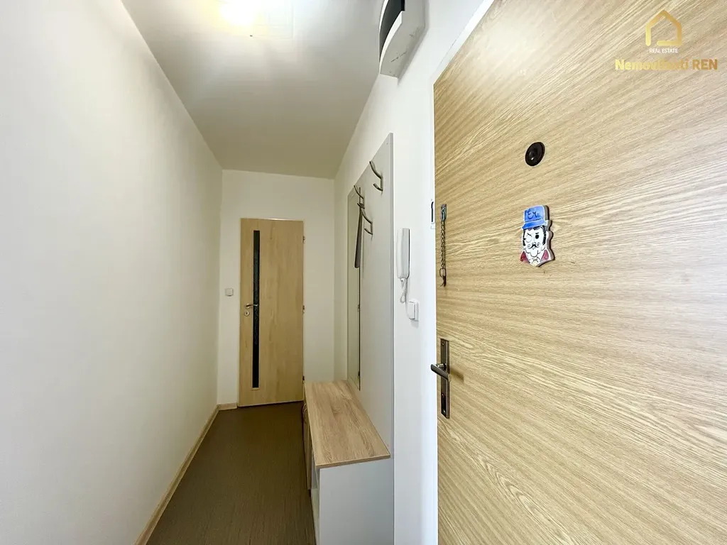 Nabízený byt je po kompletní vkusné rekonstrukci a podnajímá se včetně zařízení. V kuchyni se nachází nová moderní kuchyňská linka se spotřebiči - lednice, pračka a myčka. V obývacím pokoji je hnědá rohová sedací souprava, konferenční stůl, TV sestava a jídelní set. V pokoji je umístěná komoda, postel a psací stůl s policí. V koupelně je sprchovací kout s nižší vaničkou, umyvadlo a WC. Velkou výhodou je velký úložný prostor v komoře. Podlaha je tvořena kombinací kobercové krtiny, linolea a PVC. V domě je výtah. Sklep je k dispozici. Za domem je hřiště. V okolí se nachází veškerá občanská vybavenost.