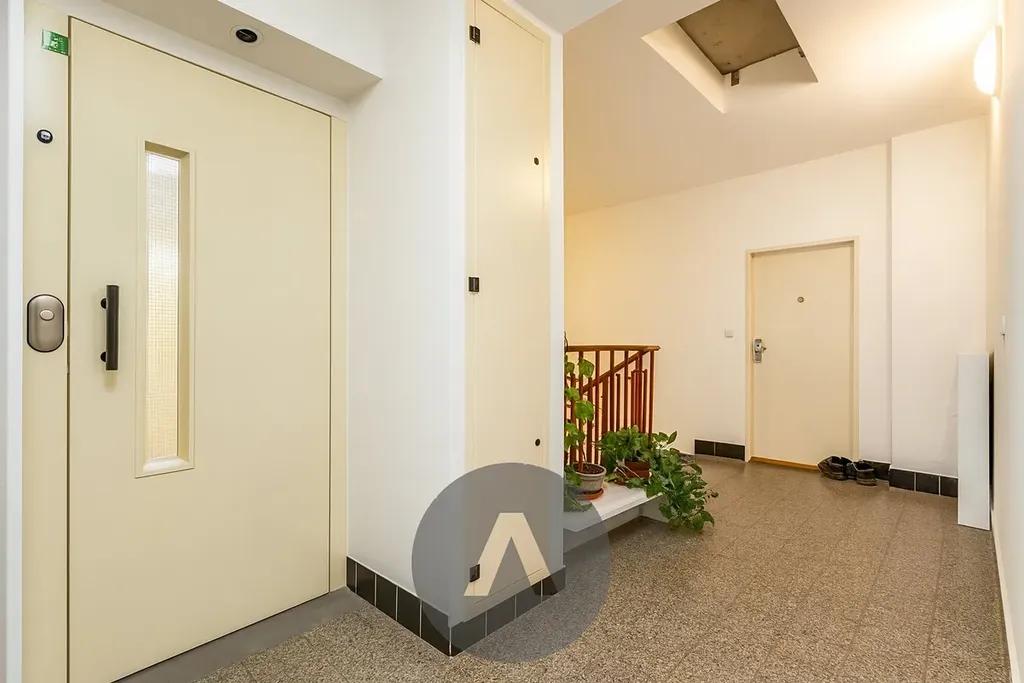 ​Nemovitost se nachází v pátém patře udržovaného domu s výtahem. Velkou předností je umístění v nejvyšším obytném podlaží, nad nímž se nachází již jen půdní prostory. Tato dispozice zajišťuje naprostý klid bez sousedů nad hlavou a soukromí, které je v městském bydlení výjimečné. Díky severozápadní orientaci a izolační vrstvě půdy si byt udržuje velmi příjemné klima i během letních měsíců.