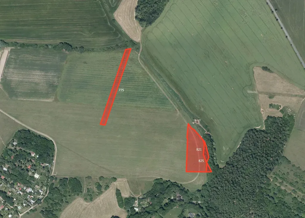 Jedná se o parcely č. 775, 821, 825 a 1025 o celkové výměře 8 911 m². Pozemky jsou vedeny jako orná půda a trvalý travní porost.