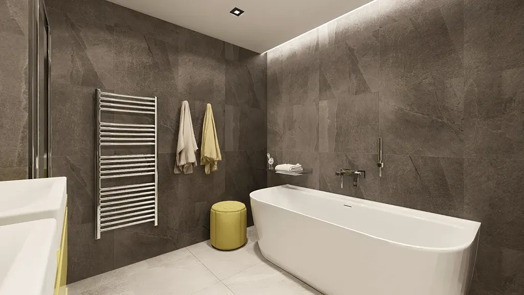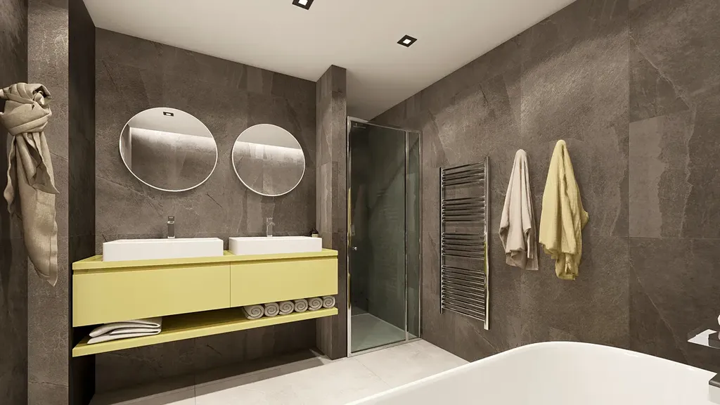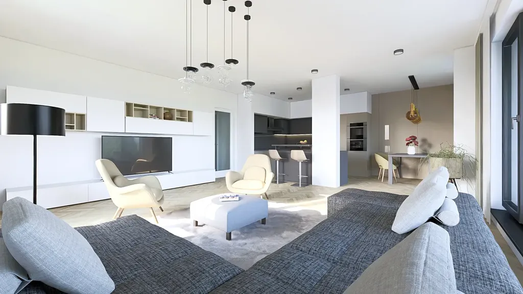 Cena bytové jednotky zahrnuje vysoký volitelný standard (kvalitní vinylové podlahy, zařizovací prvky koupelen Villeroy & Boch, Grohe, velkoformátové obklady a dlažba, plné laminátové CPL dveře a další).
