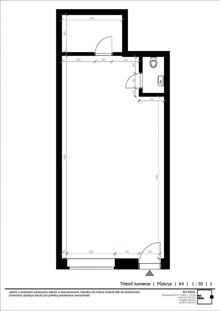 Obchodní prostor o výměře cca 50 m² podlahové plochy se sociálním zázemím a kanceláří se nachází na adrese Táboritská 67 v lázeňském městě Třeboň.