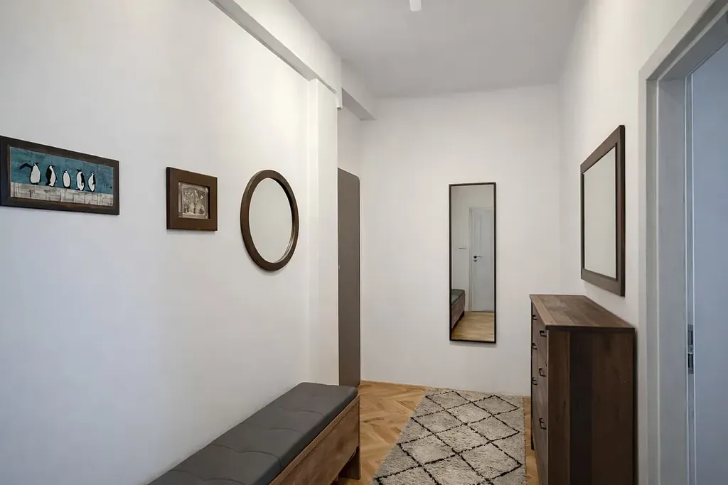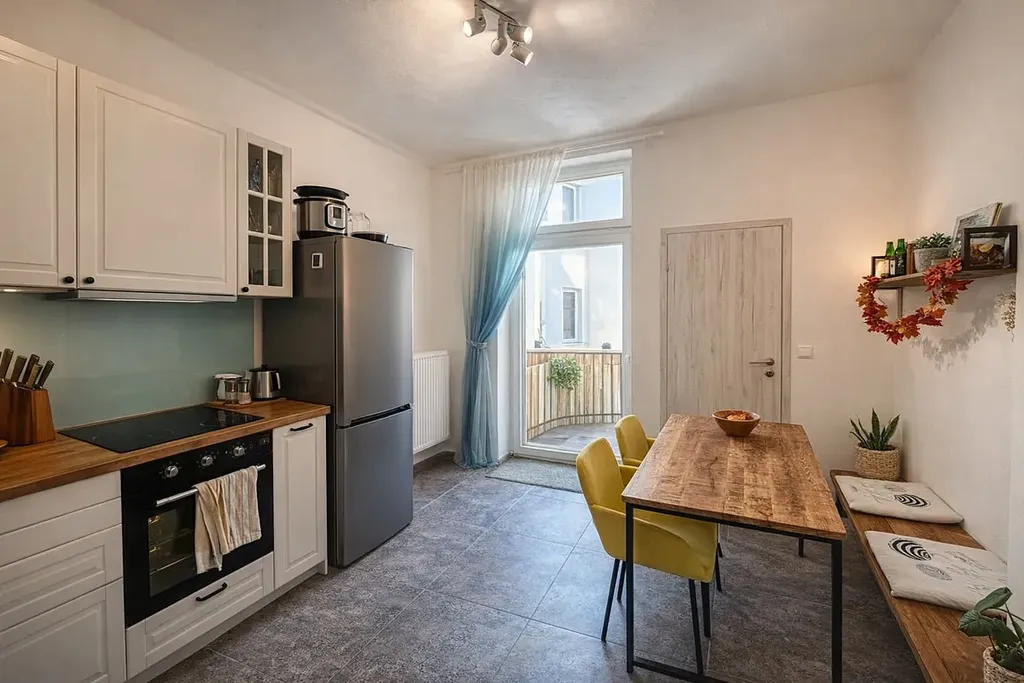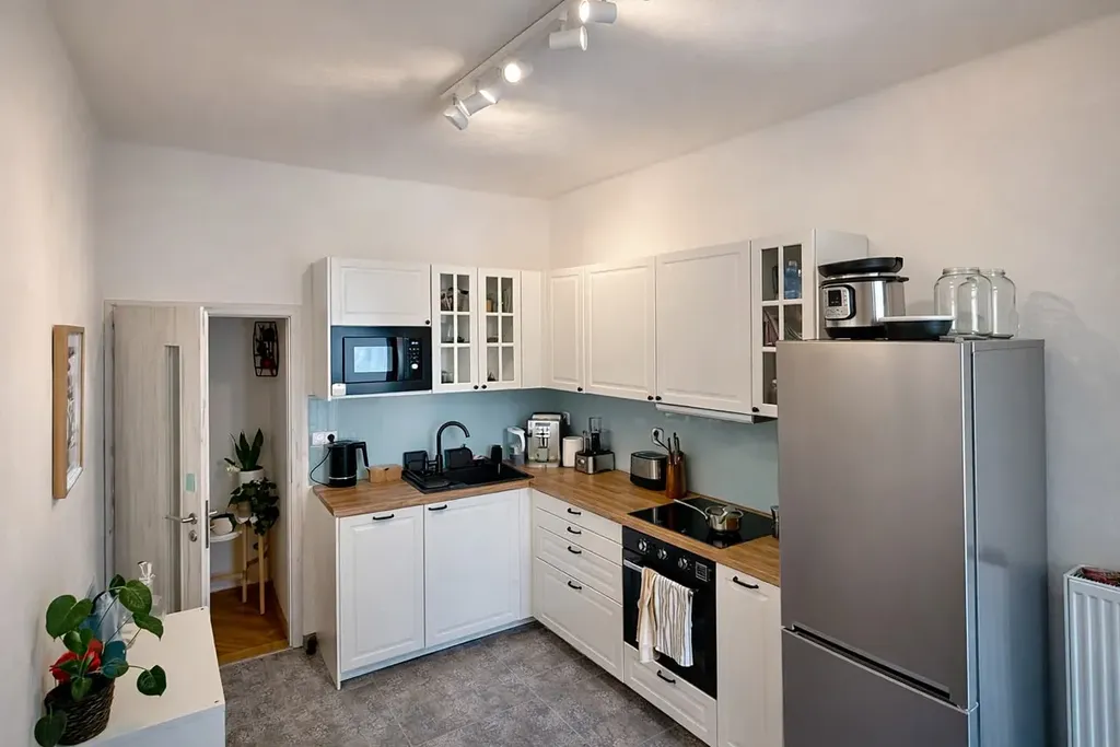 Byt je kompletně po rekonstrukci a nabízí moderní, čistý a velmi příjemný interiér. Součástí bytu je balkon o velikosti 2 m² a prostorná komora / úložný prostor. Byt je plně vybavený – nábytek, pračka, myčka, pracovní stoly a kompletní kuchyňské vybavení včetně nádobí, příborů a hrnců. Byt je připraven k okamžitému nastěhování, stačí pouze osobní věci.