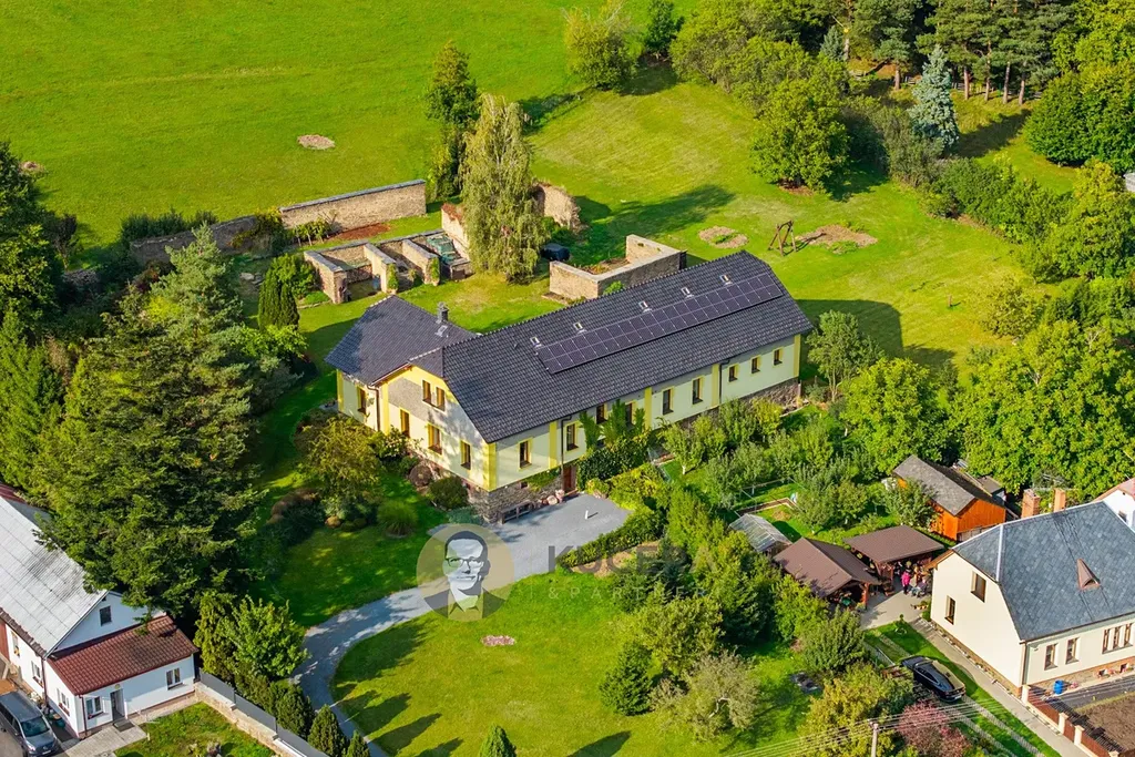Ve vzrostlé zahradě o rozloze 7 360 m² stojí prostorný rodinný dům ve tvaru písmene L, který prošel kompletní rekonstrukcí. Dnes nabízí moderní, úsporné a technicky precizní bydlení v energetické třídě A. Díky dvěma samostatným obytným jednotkám poskytuje dům naprostou svobodu v tom, jak jej využijete – ať už jako rodinné sídlo s prostorem pro hosty, pro společné chvíle s přáteli nebo pro pohodlné oddělení práce od soukromí.
