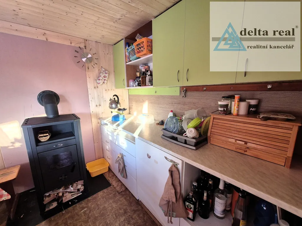 Nabízíme Vám k prodeji zahrádkářskou chatku, která se nachází v zahrádkářské kolonii Osada Vyhlídka. Dispozice chatky: obytná kuchyň s krbovými kamny a ložnice. Na obytnou část chatky navazuje pergola. Pozemek o celkové výměře 288 m2, na kterém stojí chatka, je v majetku města Šumperk. Roční nájemné za pronájem pozemku činí cca 1500 Kč. Na zahrádce je vývod vodovodní přípojky napájený pitnou vodou. V chatce je přivedena elektřina díky solárním panelům umístěným na střeše. Na zahradě se nachází sklad nářadí, skleník, suchý záchod. Zahrada je oplocena ze 3 stran.