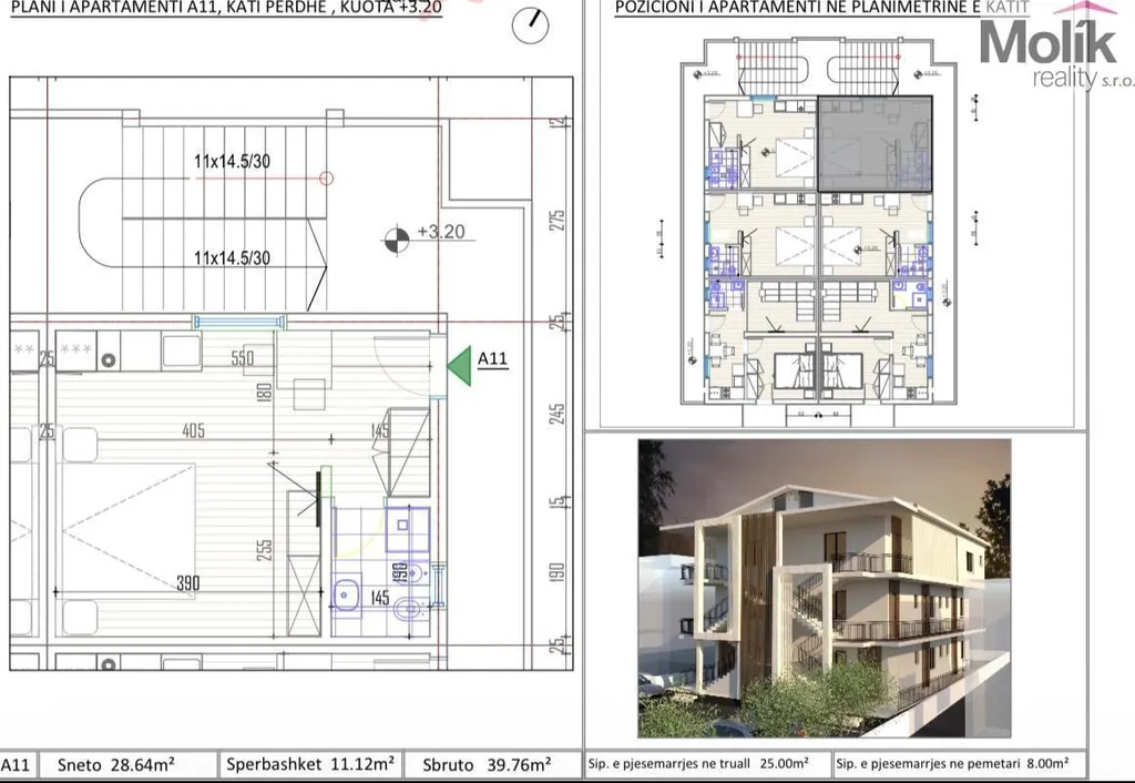 8 apartmánů 1+1 a 8 studií