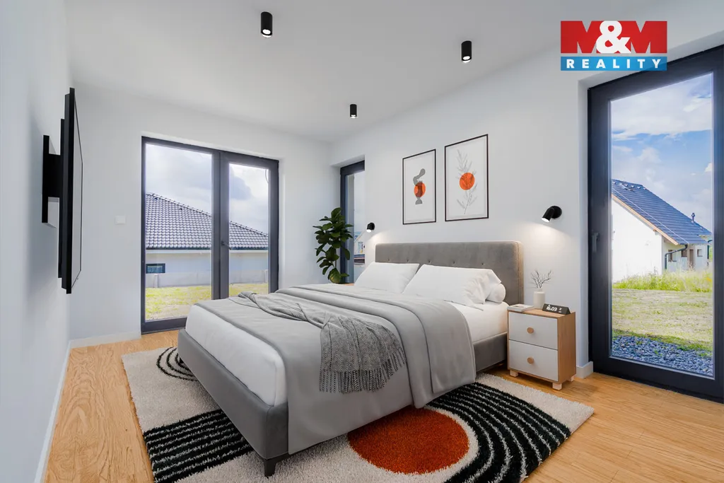 Toužíte po bydlení na výjimečném místě, kde se snoubí komfort, příroda a klid? Pak vás nadchne tento nadstandardní bungalov o dispozici 4+kk s dvojgaráží, užitnou plochou 216 m² a krásným rovinatým pozemkem o rozloze 1018 m², který se nachází v nové rezidenční čtvrti Frymburk - Blatenská, jen 800 metrů od centra a břehu Lipenské přehrady. Frymburk, nově vyhlášený přírodními léčebnými lázněmi, nabízí skvělou kombinaci celoroční rekreace a plnohodnotného zázemí pro rodinný život. Bungalov je navržen s důrazem na maximální pohodlí – prostorný obývací pokoj s kuchyní a jídelnou plynule navazuje na krytou terasu a zahradu. Kuchyň má praktickou spíž. V klidové části najdete tři ložnice, šatnu a dvě koupelny. Obě koupelny jsou dokončeny v luxusním standardu – obklady a dlažby Porcelanosa, podomítkové baterie Grohe Essence. Každý pokoj má přímý vstup do zahrady. Součástí domu je i technická místnost s vlastním vstupem do garáže.. Výhodou tohoto domu je možnost dokončení dle svých představ.