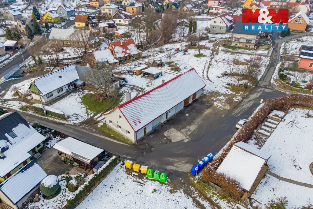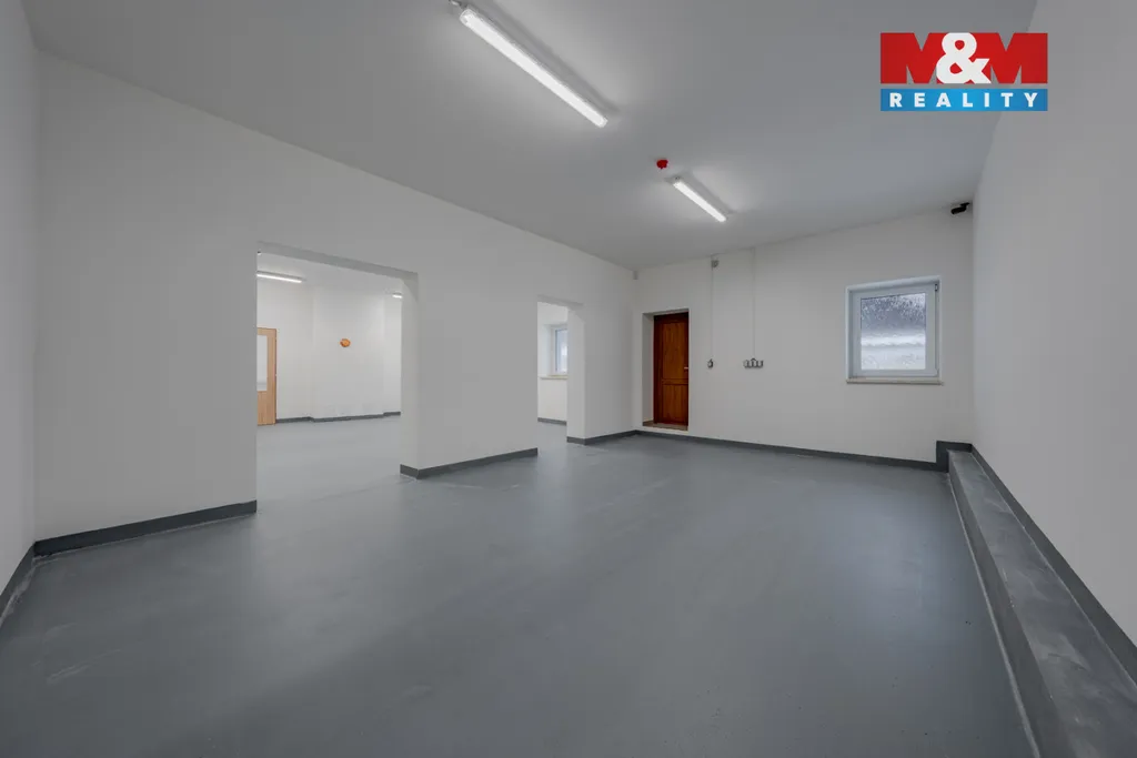 Součástí prvního prostoru o výměře 128 m2 je sociální zázemí - WC, sprcha, šatna a kuchyňka, součástí druhého skladu o výměře 45,5 m2 je WC, třetí sklad má výměru 43,3 m2. Výška 3 m, výška vrat 2,9 m. Vytápění el. přímotopy. Součástí nájmu je i manipulační prostor před nemovitostí o výměře 265 m2 s možností parkování až 8 automobilů a venkovní prostor o velikosti 363 m2, po dohodě možno oplotit a používat jako venkovní sklad. Příjezd po obecní komunikaci i pro kamiony. Ideální využití jako sklad nebo tichá dílna. K pronájmu ihned.