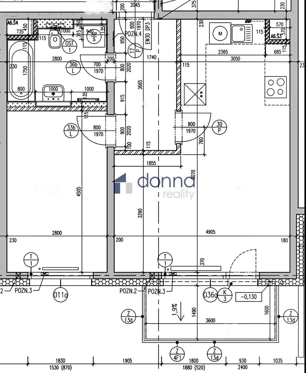 Obývací pokoj s balkonem a moderní kuchyňskou linkou vč. spotřebičů ( lednice, myčka nádobí, varná deska, pečící trouba), nezařízená ložnice, koupelna s vanou a závěsným WC. Velká šatní skříň na chodbě bytu. Byt má jižní orientaci.