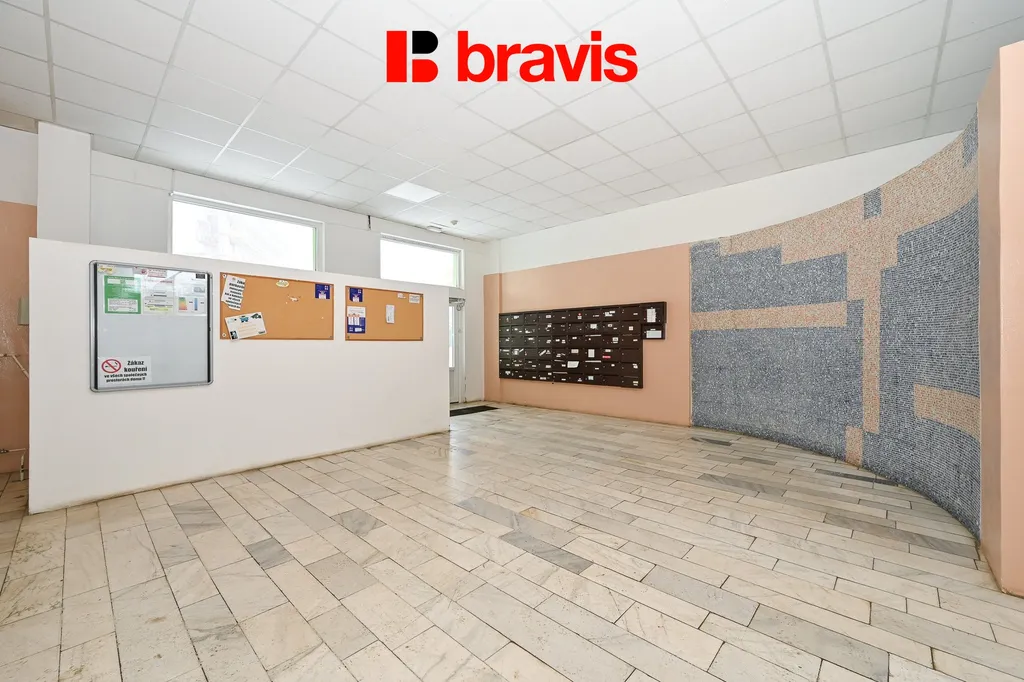 V zastoupení majitele nabízíme ke koupi byt o dispozici 1+kk s lodžií, umístěný ve 5. patře panelového domu s výtahem na klidné adrese v městské části Brno–Líšeň, ulice Jedovnická.