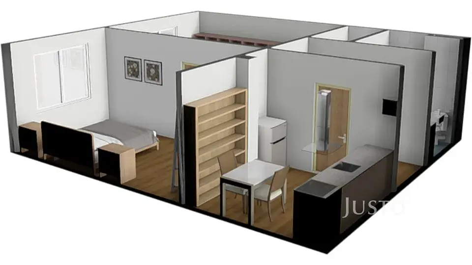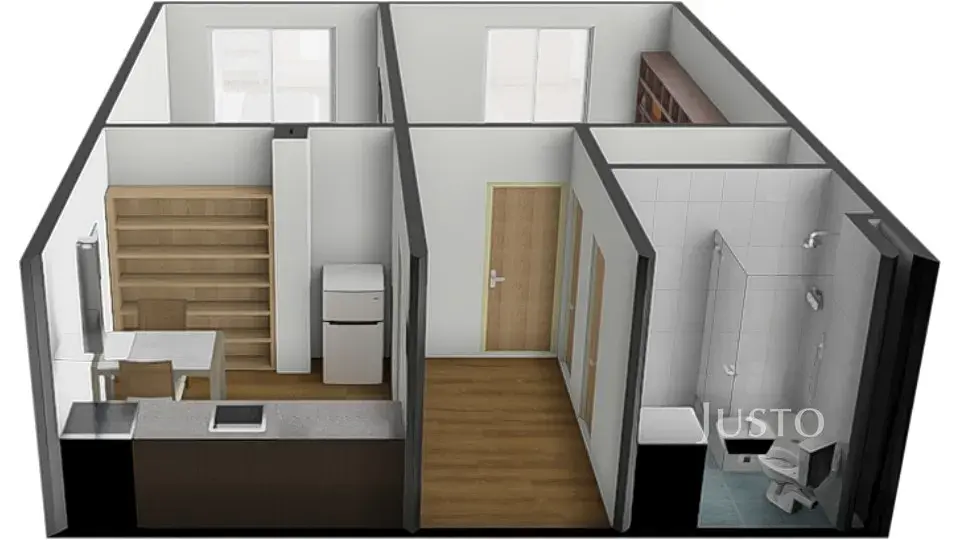 Výhodou jsou nízké měsíční náklady na provoz bytu a velmi klidné prostředí i přesto, že se nacházíte v samotném srdci města – do několika minut pěšky se dostanete na náměstí, k řece i do obchodů.