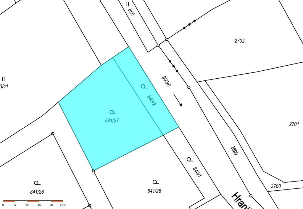 Nabízený předmětný pozemek se nachází v okrajové jihovýchodní lokalitě obce, je v částečně svažitém terénu. Pro někoho ale částečná svažitost parcely může být výzvou jak si zajímavě postavit svoji nemovitost například s účelným zázemím 1. PP s otevřeným vstupem z něj do zahrady za domem nebo za domem k vytvoření si členitější skalky na okrasné zahradě. Spodní část pozemku směrem od příjezdové cesty tvoří pás s listnatými dřevinami, který představuje hlukovou zábranu. Není ani vyloučeno, že z této části do budoucna dle záměru a potřeby vlastníka může vzniknout i zahrada s ovocnými stromy.