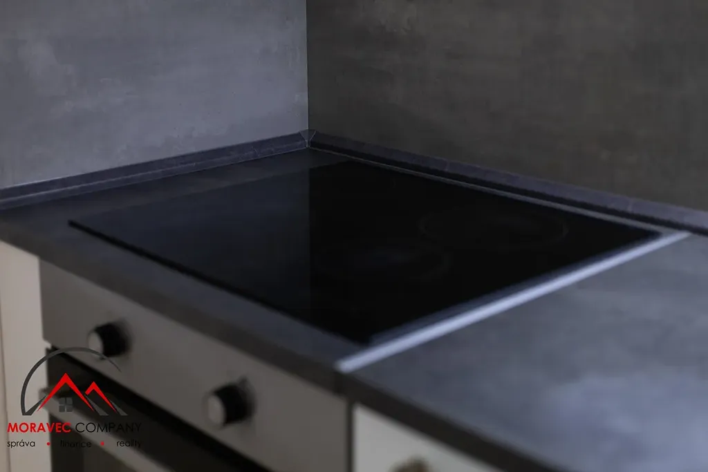 Vybavení bytu zahrnuje kuchyň s elektrickou troubou, myčku, indukční varnou deskou a digestoř. Koupelna je vybavena sprchovým koutem, WC je samostatné.