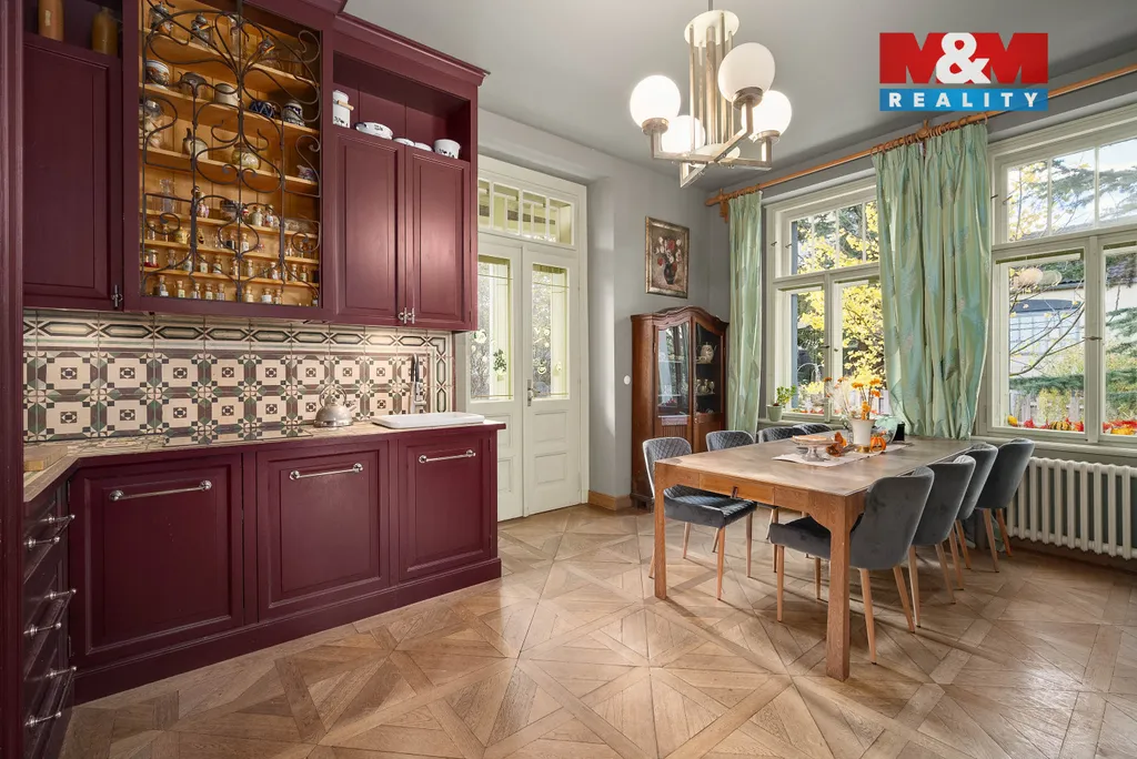 Hledáte kouzlo historie, které zůstalo zachováno v původním duchu? Nabízíme vilu z roku 1914, která byla v roce 2007 zrekonstruována s důrazem na zachování původního stylu. Dům je kompletně podsklepen, vytápění zajišťuje tepelné čerpadlo země vzduch, navíc jsou v domě 3 designová kamna za účelem lokálního vytápění a příjemné atmosféry. Interiéry jsou vybaveny dřevěnými podlahami (kazetové palubky), vestavěný dřevěný nábytek, kuchyňská linka, interiérové dveře. V současné době je dům využíván dvougeneračně s možností rozšíření obytných prostor na půdě. Vlastní, rovinatý pozemek o celkové výměře 1405 m2, na němž najdete letní kuchyni s pergolou, zahradní koupací jezírko, skleník, zděný zahradí domek, zimní zahradu. Vila je umístěna v městysi Karlštejn, cca 13 km východně od Berouna a 30 km jihozápadně od centra Prahy. Leží uprostřed chráněné krajinné oblasti Český kras. Dominantou obce je hrad Karlštejn a jedinečná příroda obklopující tuto lokalitu, vč. řeky Berounky.