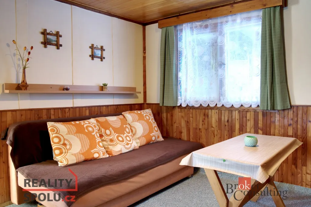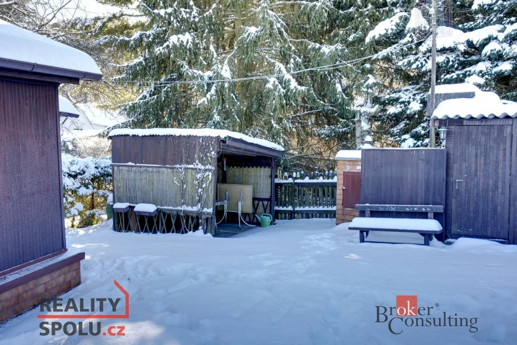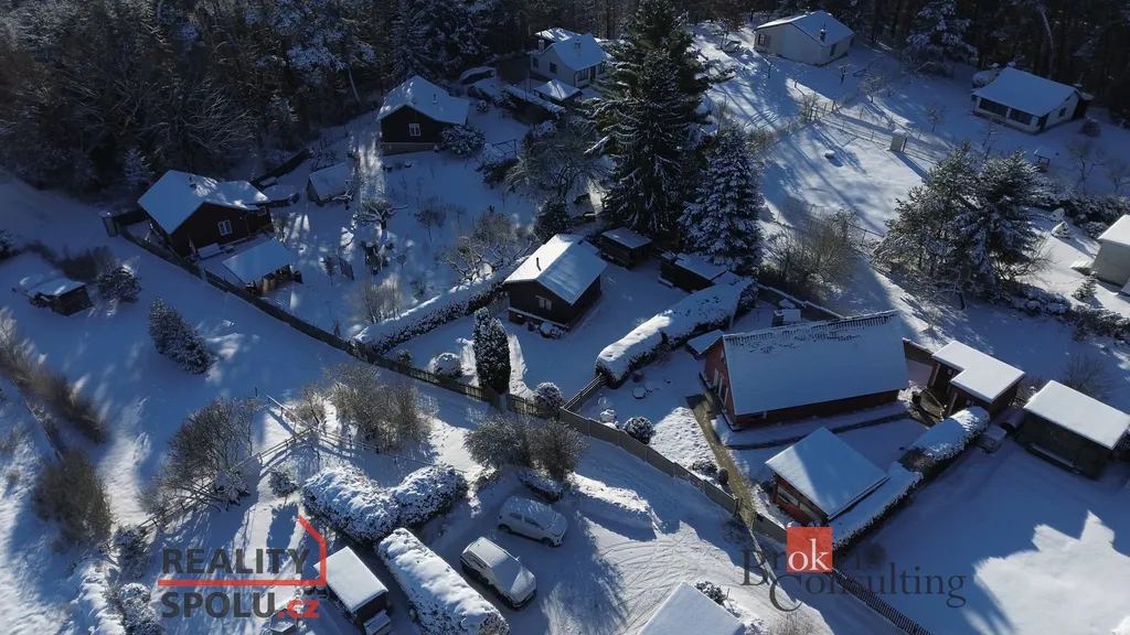 Chata má užitnou plochu cca 38 m² a praktickou dispozici 2 pokoje + kuchyňka. Stavba je postavená na zděných základech, je částečně podsklepená a má sedlovou střechu, což zajišťuje stabilitu i dobré využití prostoru.